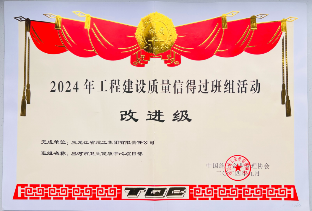 • 黑河市衛(wèi)生健康中心項(xiàng)目部2024年工程建設(shè)質(zhì)量信得過班組活動(dòng)改進(jìn)級(jí)