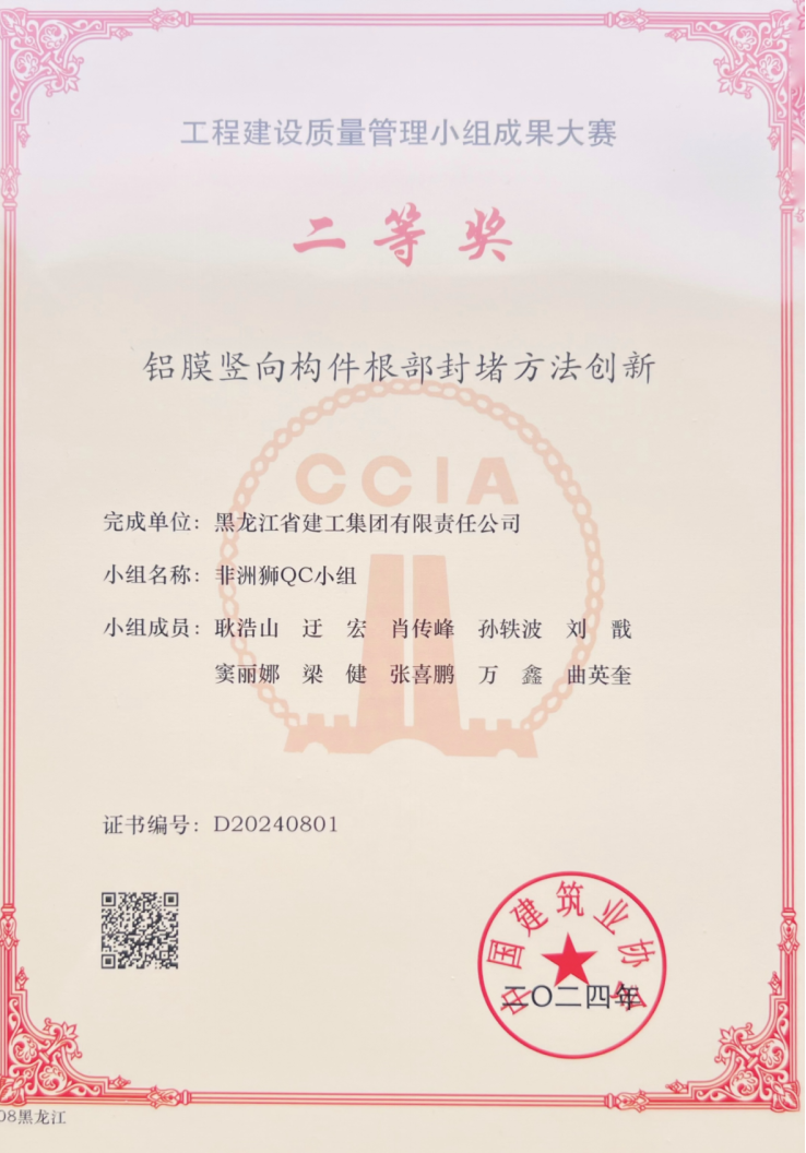 • 工程建設(shè)質(zhì)量管理小組成果大賽二等獎(jiǎng)