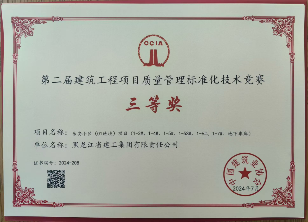 • 第二屆建筑工程項(xiàng)目質(zhì)量管理標(biāo)準(zhǔn)化技術(shù)競(jìng)賽三等獎(jiǎng)